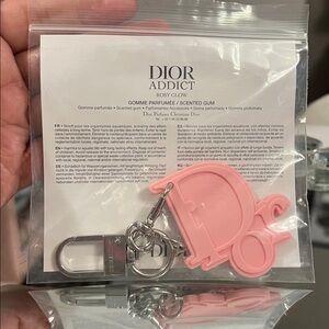 Chic Dior Addict keychain in rosy pink. Stylish 'Dior' lettering. Ideal for bags or keys. It is nicely scented!