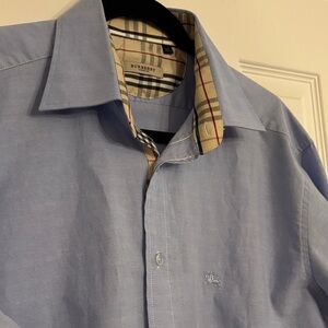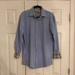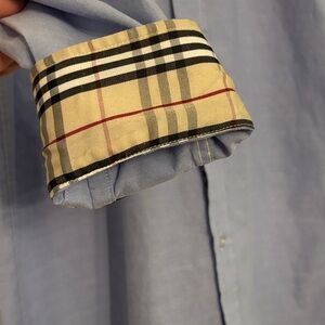 Burberry | XXL | Light Blue Button-Up Shirt with Plaid Cuffs