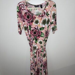 floral dress • midi dress • feminine style • blush pink • spring summer • casual chic • stretchy knit • everyday dress • flattering fit • comfortable wear • versatile wardrobe staple
