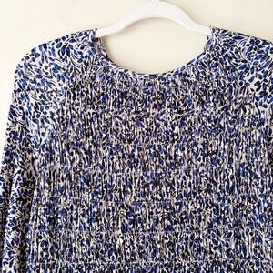 Boden | Smocked Bodice Jersey Dress Leaf Print Long Sleeves Blue Tan Size 8 Long