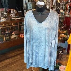 Elevate your wardrobe with this stylish blue V-neck top. Perfect for any occasion, it offers both comfort and elegance.