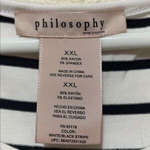 Philosophy Women's Black And White Striped Top. NWT. Size XXL.