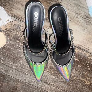 Ochotoros: Torreon-01 Slip On Women's Mule Pumps in Silver Size 9