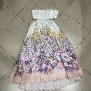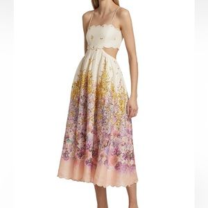 NWT Zimmermann Jude Scalloped Cut-Out Linen Midi Dress Peach Gradient Floral