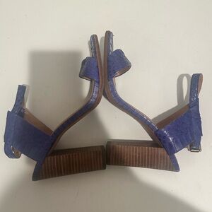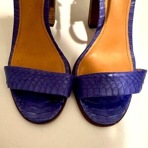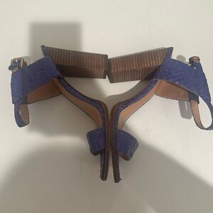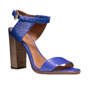 COACH Lexey Leather Snakeskin Chunky Open Toe Heels Sandals Size 8 Deep Marine Cobalt Blue