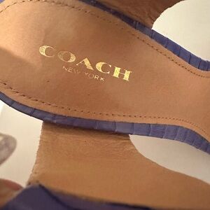 COACH Lexey Leather Snakeskin Chunky Open Toe Sandals Deep Marine Blue Size 8