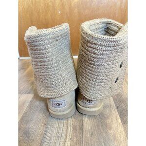 UGG Classic Cardy Knit Bootie Size 9 Chestnut Tan Beige Cottagecore Warm Cozy