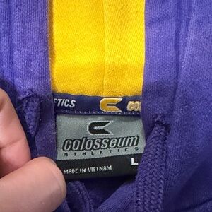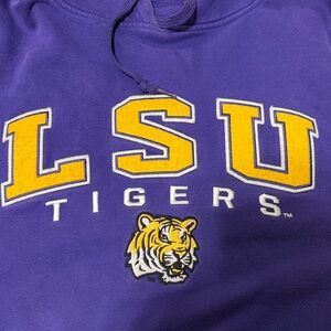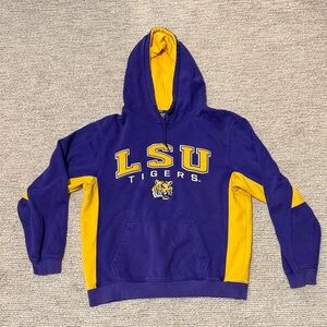 LSU Tigers hoodie in vibrant purple and gold. Features bold lettering and logo.