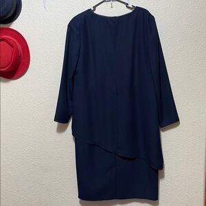 R&M Richards By Karen Kong Women's Navy Asymmetrical Dress with Embellishments. Vintage Dress. Very Good Condition. Size 14.