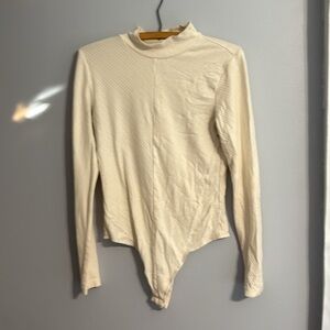Knix x Birds Papaya Ribbed Mockneck Bodysuit Cream Long Sleeve Size M