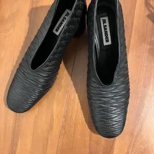Jil Sander black block heel loafers