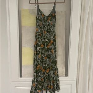 Reformation size 8 orange blossom dress with adjustable tie straps with no flaws. It has a smocked bodice. Elegant, playful, and comfortable. Perfect for weddings, cocktail hour, or other outings.