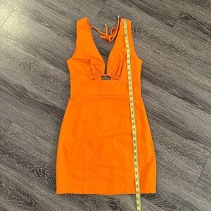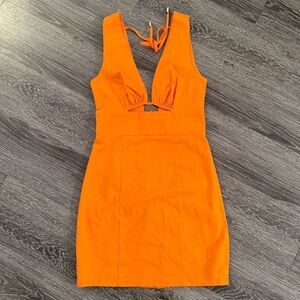 Meet the Runaway The Label - Natalia Dress, the mini that was made for day parties and lunchin' around! This stunning number features a deep V-neck with an underbust cut out, wide straps and a deep V-back with tie detail. It has the most flattering bodycon fit and the beautiful tangerine colour makes it a winner for the Spring and Summer. Team it with some sleek heeled sandals, fine jewellery and throw your hair up in a bun for a polished look!
