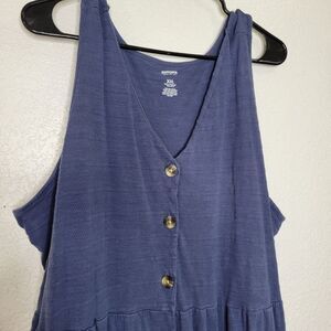 Sonoma Size XXL Blue Sleeveless Tank Tiered Button Front Midi Dress with Pockets