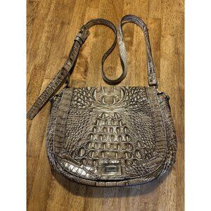 BRAHMIN Melbourne Collection Crocodile Embossed Leather Brown Beige Designer