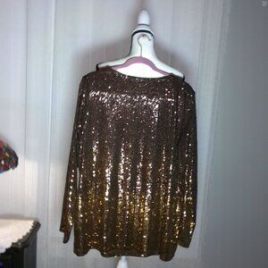 SUSAN GRAVER OCCASIONS Long Sleeve Scoop Neck Brown/Gold Umbre Sequins Tunic XL