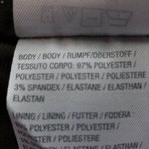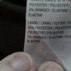 Body = 97% Polyester 3% Spandex Lining = 95% Polyester 5% Spandex