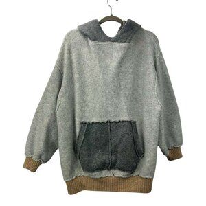 Free People Women's Medium Wool Blend Significant Other Hooded Sweater Gray/Tan