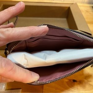 What a perfect gift!!! Gorgeous pink/rose metallic wristlet with 2 charms! Bought it for myself but have decided I have too many wristlets so I am selling it! Retails $128.00, comes with original Coach box and plastic bag!!! I did open it to show pictures. Size is 6.5 X 4”