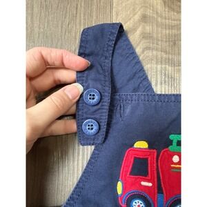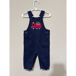 Baby Boy Train Embroidered Navy Overalls Dungarees 9-12 Months Applique Plaid