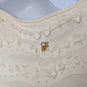 Carolina Herrera Cream Ruffle Knit Body Contouring Long Dress Size XS