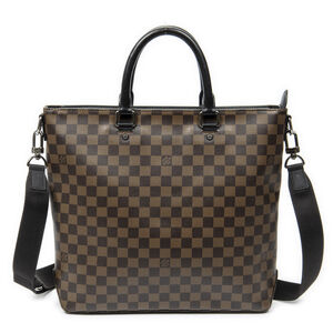 Louis Vuitton Shoulder Bag Jake Tote in Brown Damier Ebene and Silver Brass hardware. The product is in Excellent Condition (A).