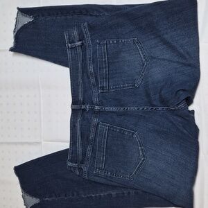 Classic straight leg jeans by J. Jill. Dark blue denim with adorable tulip cuff