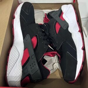 Red and Black NIKE Huarache Sneakers. Men’s size 11.5. Pre loved with original box. Shoes in great condition. Stylish and comfortable classic sneakers.