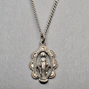 VTG Creed Sterling Silver Miraculous Medal Pendant Necklace 18" Catholic Religio