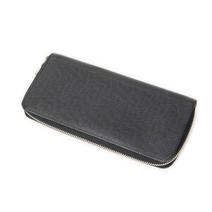Louis Vuitton Wallet Zippy Wallet Vertical in Black Taiga Leather and Silver Brass hardware. The product is in Excellent Condition (A).