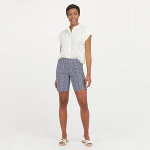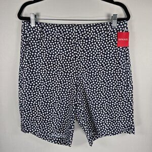 NWT SPANX Sunshine Shorts, 10” Pull On Bermuda Navy Painted Dot 50214R Size L