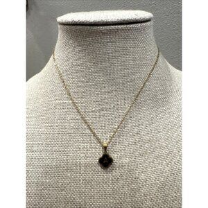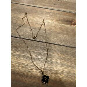 NEW Womens Stainless Steel Goldtone Black Clover Initial Necklace A 17.5"