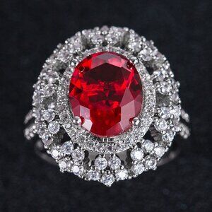 💍 Flower Emerald Ruby Oval Zircon Luxury Vintage Rings for Women, INDN8115