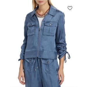 Cinq a Sept Dale Ruched Sleeve utility jacket in a sophisticated blue hue.