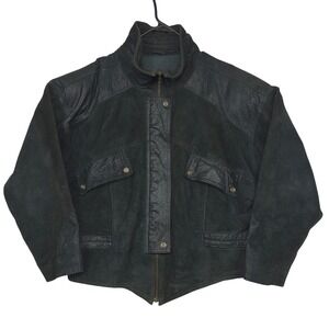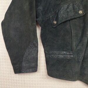 Learsi Genuine Leather Suede Snakeskin Detail Bomber Jacket Men Medium 46" Black