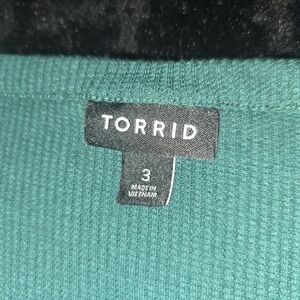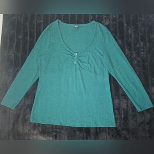 Torrid Women’s Teal Ribbed Long Sleeve Button Front Top Polyester Rayon Spandex Size 3
