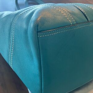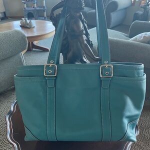 COACH Discover the perfect blend of style and functionality with this elegant TEAL tote bag, complete with a matching wallet. Ideal for any occasion, this bag offers ample space and a chic design.preloved good condition!