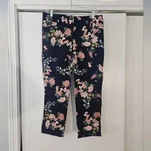 New York & Company Navy Floral Size 6 Dress Cropped Capri Pant