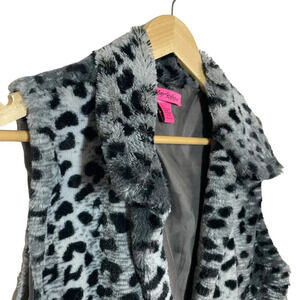 TAGS: betsey johnson, vintage, faux fur, fur, vest, retro, animal print, leopard, soft, maximalist, 90s, rare, funky, sleeveless