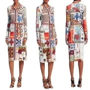 Tory Burch Womens L Silk Blend Laurence Scrapbook Belted Shirtdress
