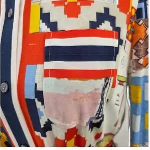 Please note measurement photos are taken under different lighting. You may see shadows, light reflection, or fading of colors. These are not flaws. Any actual flaws will be noted in the non-measurement photos and in the description.