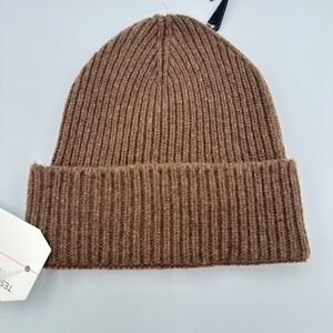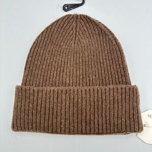 TESMA RECYCLED CASHMERE Beanie Hat Brown Ribbed Knit Sustainably Made in Italy
