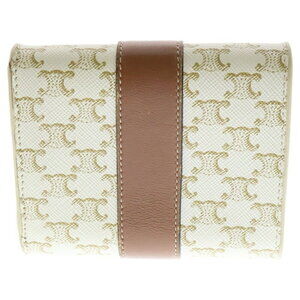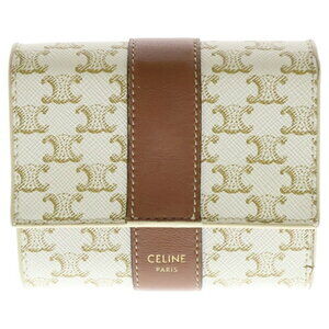 Celine Triomphe Leather Trifold Compact Wallet White Brown