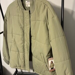 Stylish olive bomber jacket by Ci Sono. Features a quilted design. Perfect for casual wear.