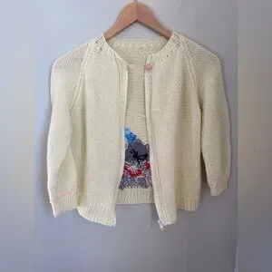 Vintage Hand-Knit Dumbo Zip Cardigan Size 6-7 (approx)