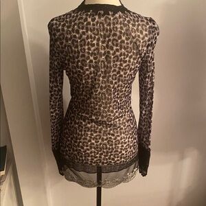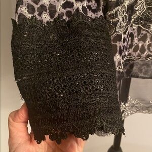Vintage perfect condition size small hugging kisses beaded embroidered animal print lace top! STUNNING! 27 inches long 17.5 inches pit to pit lying flat. Stretchy material. You will LOVE this top!!