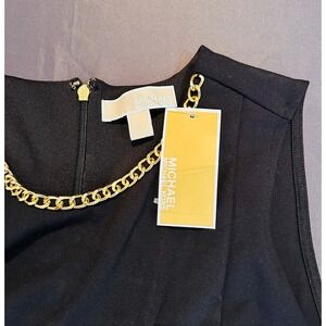 Keywords: Michael Kors dress, sheath dress, chain detail, sleeveless dress, black dress, cocktail dress, work dress, elegant, classic, designer dress, gold accent, sophisticated, XL dress