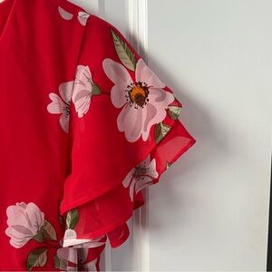 New with Tags. Red wrap mini dress with floral print. Women’s Size Small. Sold out online. NWT