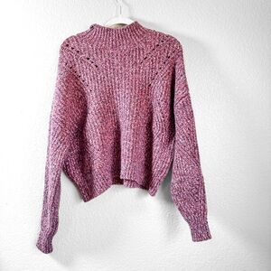 LOFT Marbled Purple Pointelle Mock Neck Sweater Relaxed Fit | Medium