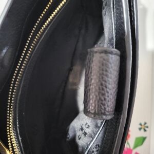 Exterior design details: gold-tone hardware Interior design details: 1 center zipper compartment, 2 slip pockets, 1 zipper pocket, fabric lining deep Snap Closure